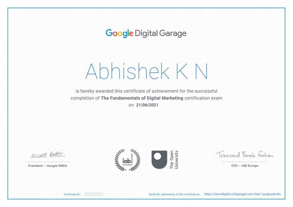 In the process of learning online Digital Marketing course, you will be trained on subjects theoretically and practically which has covered in all 3 certification assessment. Below list of Google certificates are offered by Google in association with their partner network without any charges: