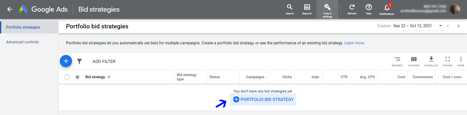 and select “+Portfolio Bid Strategy” as depicted in the image below;