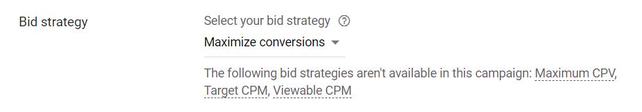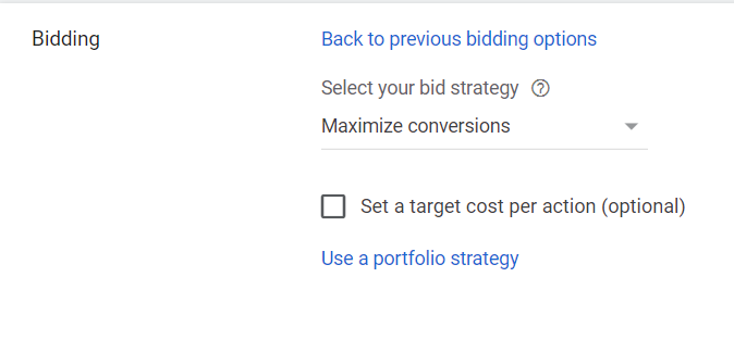 To use this strategy in Search Ads & Display Ads, one must select “Maximise Conversions” under Non-recommended bidding strategies, as depicted in the image below;